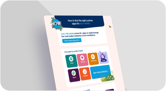 How to find the right partner expert for your needs. Over 170K experts from consulting firms and digital agencies bring strategic guidance, deep technical skills, and Salesforce expertise across every industry, product, and region. So that you can: • Identify, implement, and innovate with better outcomes. • Exceed expectations and build trusted, long-term relationships with your customers. How to find the right partner expert There are two easy ways to find the right partner expert: 1 Type a partner name into the Search bar to validate 1 partners you already know and trust. Then click on their Consultant listing, toggle to their Expertise tab to review their expertise. 2 Quickly filter to narrow your search based on 2 product, industry, or location and review the display of relevant partners. Looking for a Looking for a Looking for a MuleSo partner? Tableau partner? Salesforce.org partner? Find the right team of experts Get the expertise you need Find experts that serve to accelerate your growth to solve your toughest data nonprofits > with MuleSoft here > challenges > Find experts that serve higher education > How to evaluate the expertise of a partner Salesforce measures and validates partner expertise in 3 ways: 1 Knowledge: measures breadth and depth of credentials for each industry and product. 2 Experience: measures accrued experience from implementing Salesforce products through different use cases. 3 Quality: measures the consistency with which partners are able to deliver customer success. You can find a partner’s level of expertise on AppExchange from within their Expertise tab. Learn more about the levels of partner expertise here. For every wow there’s a partner expert to deliver the how. Get started on AppExchange