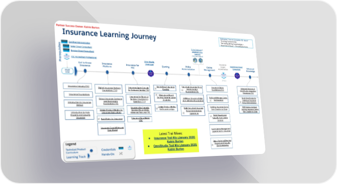 Individual Insurance Policy Administration Foundations (TH) Insurance Learning Journey Certified Administrator START HERE Get to Know Insurance Prerequisites OmniStudio Developer FSC Accredited Professional Insurance Platform Quoting Policy Administration Claims Management Advanced Knowledge Insurance Expert Accreditation (FY25) Build OmniScripts for Individual Insurance Policy Administration Advanced Features of OmniStudio Integration Procedures (TH) Design Product Models for Insurance Apps. Discover and Build Quoting Experiences for Insurance Get to Know Insurance Quoting Individual Insurance Policy Administration Foundations Tracking Insurance Claims from Creation to Close Build and Manage Claims for Insurance Billing Specialist & Advanced Billing Specialist (Recommended) Experience Cloud Consultant Sales Cloud Consultant Service Cloud Consultant Estimated Time to Complete: 95 hours* *Existing Content Only *Excluding Billing Superbadges + Experience Cloud + OmniStudio Certs Build Rules for Insurance Digital Insurance Platform Foundations (TH) Group Insurance Contracts and Enrollments Foundations (TH) Insurance Claims Foundations (TH) Insurance Agent Console for Sales and Service (TH) Introduction to Auto Property and Casualty Insurance Introduction to Insurance Vertical Insurance Foundations Insurance Industry (TH) Insurance for Financial Services Cloud Admin Essentials (TH) Insurance for FSC Insurance for Financial Services Cloud Admin Advanced Features (TH) Insurance Data Model (TH) Design Product Models for Insurance Applications B2B Solution Architect: Tracking Insurance Claims from Creation to Close Build Property and Casualty Auto Claims Solution Build Claims Management Experiences for Insurance Take a Technical Dive into Property and Casualty Claims Modeling Insurance Capabilities and Data Model Build Individual Insurance Policy Administration Experiences Technical/Product Curriculum Credentials Hands-On Learning Track Legend Partner Success Owner: Katrin Burton Latest Trail Mixes: ● Insurance Trail Mix (January 2025) Katrin Burton ● OmniStudio Trail Mix (January 2025) Katrin Burton