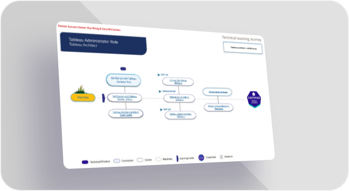 Partner Success Owner: Roy Wong & Gary McCracken Start Here Get Started with Tableau Architect Role Get Started with Tableau Server - 1 hour Tableau Administrator Role Tableau Architect Tableau Certified Architect Exam Guide Tableau Site Admin 20 hours Get Started with Tableau Architect Role Get Started with Tableau Server - 1 hour Tableau Certified Architect Exam Guide Tableau Server Architect 10 hours Tableau Server Admin 12 hours Review Tableau Blueprint Resources Self led Self led Instructor led Tableau Blueprint Basics Technical Learning Journey Tableau Architect = 40-50 hours