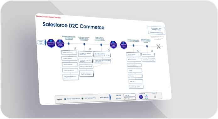 Salesforce D2C Commerce Blue Text Planned Grey Text Credentials Available Course or Curriculum Hands-On Learning Tracks Legend Third Party Learning Partner Success Owner: Tom Zarr Partner Community Platform Features Data Management Process Automation Get to Know Salesforce Commerce D2C for Administrators Implementation Camp: Connected Commerce with Payments and Marketing Cloud Salesforce Commerce D2C Foundations for Administrators Salesforce Commerce D2C Foundations for Developers Configure Your Baseline Environment Create and Publish Your Storefront Managing the Storefront Platform Overview Developer Essentials Advanced Developer Topics START HERE Commerce, Experiences and Content Apex and Database APIs & Integrations Tooling Visualforce Javascript Lightning Components Verify Installation and Extend Configurations Create a Direct to Consumer Store on Salesforce Commerce Get to Know Salesforce Commerce B2B for Administrators Create a D2C Store on Salesforce Commerce B2B Administrator = 22 hrs Developer = 32 hrs (without prior B2B training) Get to Know Salesforce Commerce for B2B for Developers
