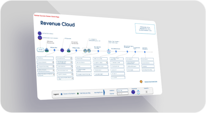 Revenue Cloud Blue Text Planned Grey Text Credentials Available Course or Curriculum Hands-On Learning Tracks Legend Third Party Learning CPQ Fast Path CPQ Primer Products & Bundles Pricing and Discounting Orders, Contracts, Renewals, & Amendments Quote Templates and Advanced Approvals Certified Sales Cloud Consultant Certified Administrator CPQ Specialist Intro and Overview Order Management & Invoice Relationship Invoice Generation Payments & Adjustments Legal Entity, Taxation Finance Books, Rev Rec, General Ledger Billing Academy Revenue Cloud Curriculum AP Exam Guide Sales Cycle Overview Scoping Implementation Best Practices Revenue Cloud Consultant Accredited Professional Lookup Product Rules CPQ Advanced Topics Amendment Complexity CPQ Deployment Billing Specialist & Advanced Billing Specialist Legacy Data Migration Introduction to Custom Development Multi Currency in CPQ Customer Asset Lifecycle Management (CALM) Multi-Cloud Billing Support Accounting Basics Billing Advanced Topics Intro: Revenue Cloud API START HERE Revenue Cloud Custom Development API Use-Case Scenario Approvals API Doc. Gen. API Contract API Designing for Scale & Performance Finance Logging Revenue Cloud Pocket Guide CPQ Specialist = 37 hrs Billing Specialist = 32 hrs Rev Cloud Consultant = 5 hrs CPQ Admin Fundamentals Billing Admin Fundamentals Subscription Management Setup and Permissions Functionality Product Overview Connecting to CPQ or Billing Partner Success Owner: Kevin Papp